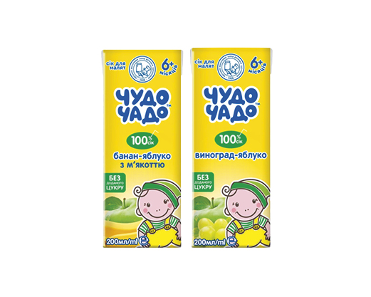 Сік виноград-яблуко, банан-яблуко з м’якоттю, 0.2 л Чудо-Чадо™