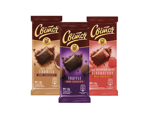 Шоколад десерт Тірамісу, 85 г, Трюфель, молочний з начинкою полуничного йогурту, 90 г Світоч™